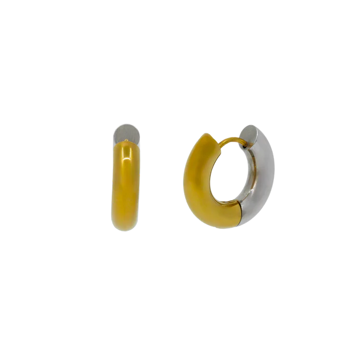 For those mixed metal girls. Paris is our classic small huggie hoop with a twist. Complete with one side as 18k Gold Plated Stainless Steel and the other as Stainless Steel, you can wear her as you please. Designed for everyday wear.