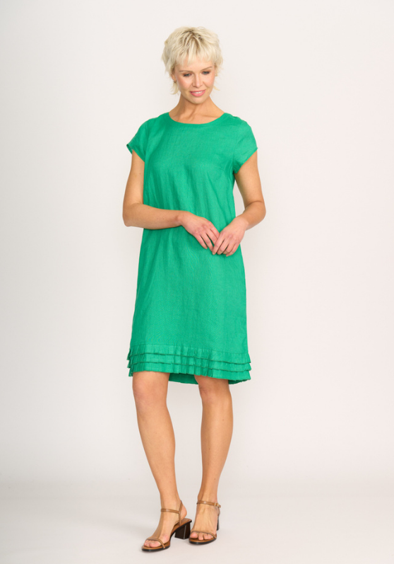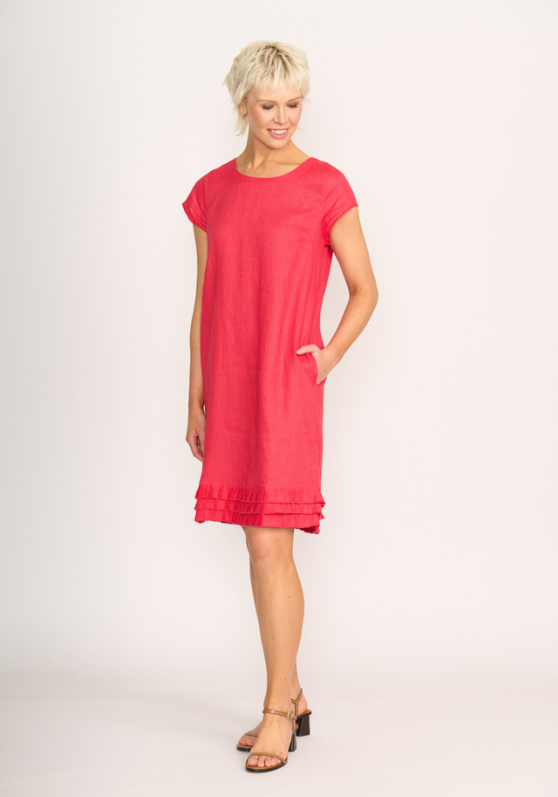 Easy summer shift dress perfect for any occasion featuring a scoop neckline, back zip neck opening, side seam pockets, pleat hem detail and relaxed fit through the body.