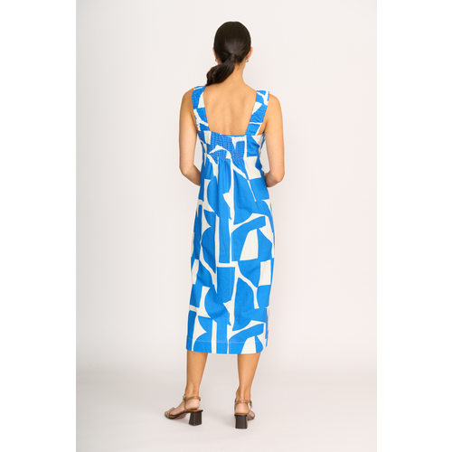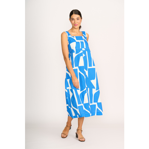 A Summer essential! Elastic strap midi length dress with a relaxed fit. Featuring inseam pockets and an empire waistline.