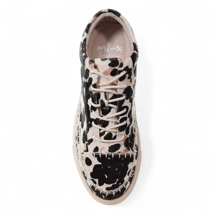 Rizz Royale is a fresh take on a favourite silhouette. This new season speckled pony edition adds texture and a quiet statement to your everyday sneaker. Crafted in luxe speckled pony hair leather and set on our signature almond sole for a refined, feminine finish, it blends bold personality with effortless wearability. Finished with our Minx 'You Look Good' sole and a 4mm memory foam insole for all day comfort, it’s your elevated off-duty essential.