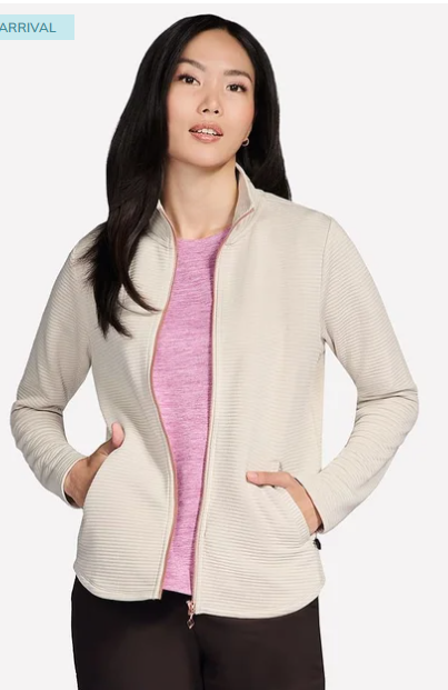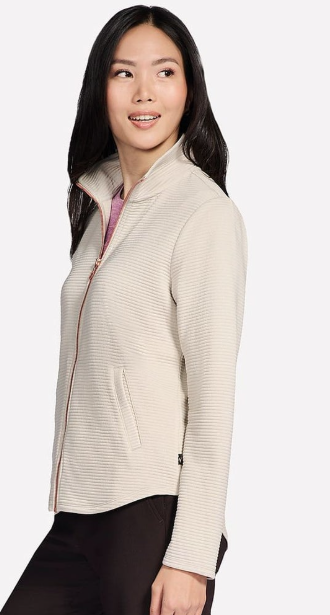 Stay active throughout the day in stylish comfort wearing Skechers GO WALK™ Shine Jacket. This sporty mock-neck layer is made from our breathable Soft Knit Ottoman™ rib fabric and features a zippered front with branded pull, a flattering scooped hem, and two welt hand pockets.