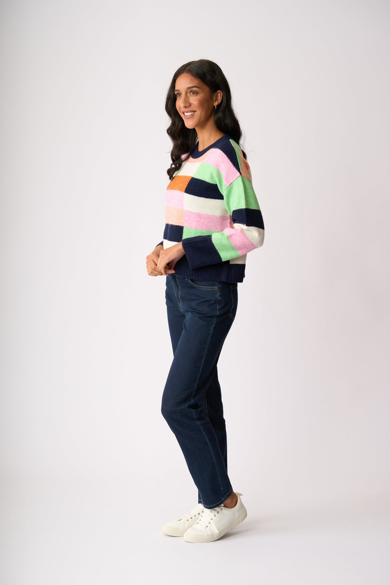 Bring a pop of colour to your winter wardrobe with this playful MEMO sweater. Crafted in plush twist knitwear, it features a vibrant colour block design, full-length sleeves, and 2x2 rib detailing at the neckline, cuffs, and hem. Perfect for layering or wearing on its own, it’s a cosy, stylish essential for everyday wear.