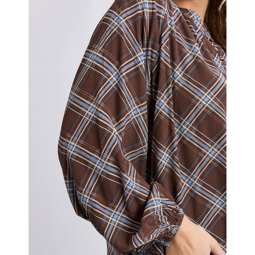 The Edison Check Top is an easy statement piece you’ll reach for again and again. Featuring a Foxwood exclusive check print, it’s finished with button neck detailing and an elastic cuff puff sleeve for a soft, flattering shape. Style it with denim for everyday wear, or dress it up with tailored pants and boots.