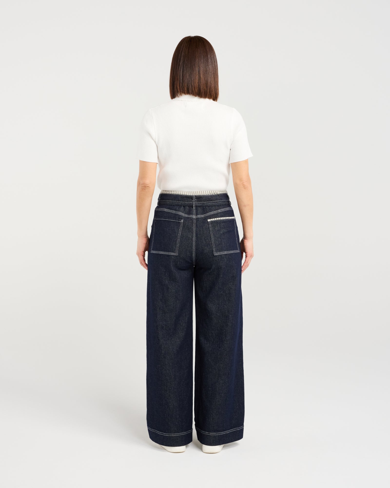 Denim: These dark denim-look pants feature a subtle contrast fabric detail at the waistband for a modern touch. With a button closure and drawstring, they combine relaxed comfort with a polished, versatile style perfect for everyday winter wear.