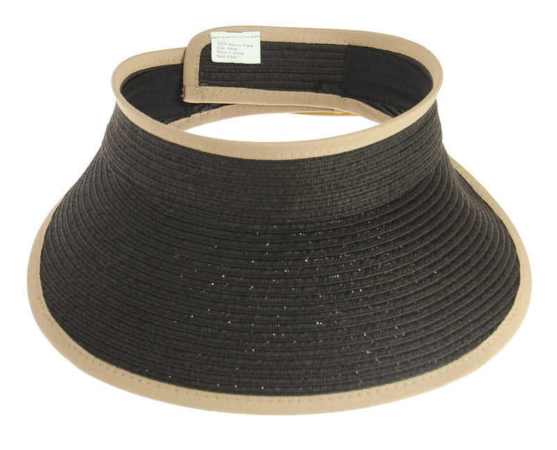 Roll up visor with elastic. Natural fibre braid. Velcro adjustable