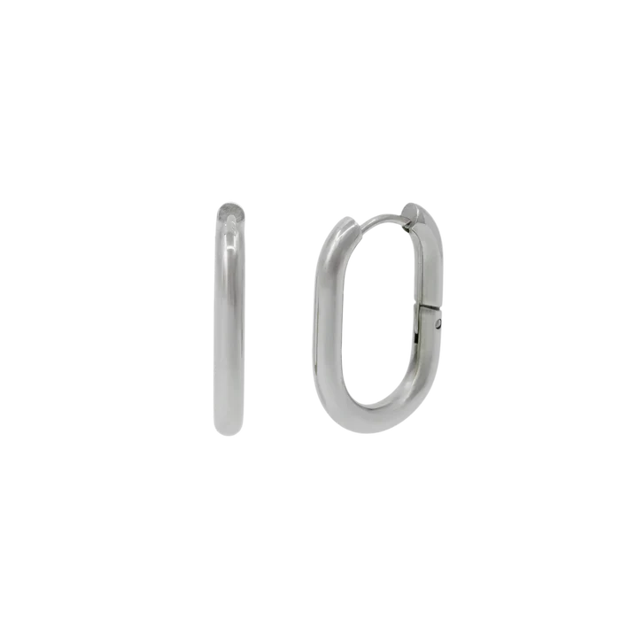 An absolute must-have in any jewelry collection. Our girl Abby is a mid size oval hoop earring and the epitome of sophistication.Designed in high quality stainless steel and 18k Gold Plated stainless steel.Measurements: 15.88 MM x 22.41 MM x 2.91 MM