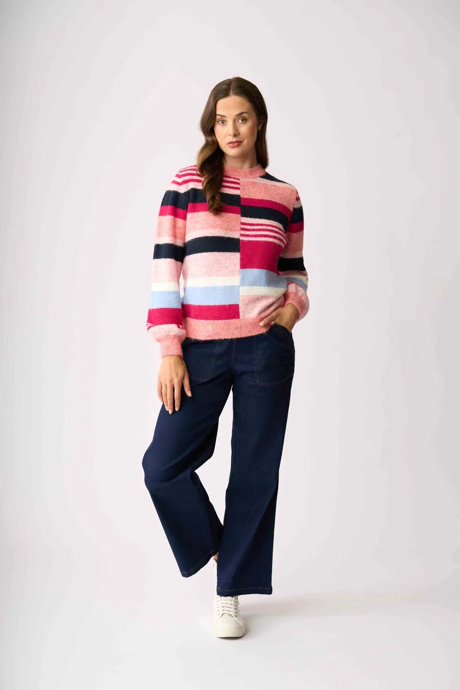 1X1 Rib along the neckline, cuff and hem in contrast colour