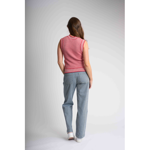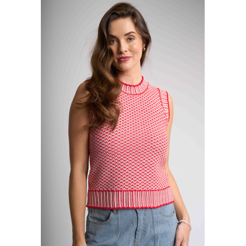 Our slim fit sleeveless vest, designed for a sleek silhouette and effortless style. Featuring a decorative knit stitch, this vest adds a touch of sophistication to any outfit. The ribbed neckline, armhole openings, and hem ensure a comfortable fit, while the body length of approximately 53.5cm (size small) offers a flattering look. Perfect for layering or wearing on its own.