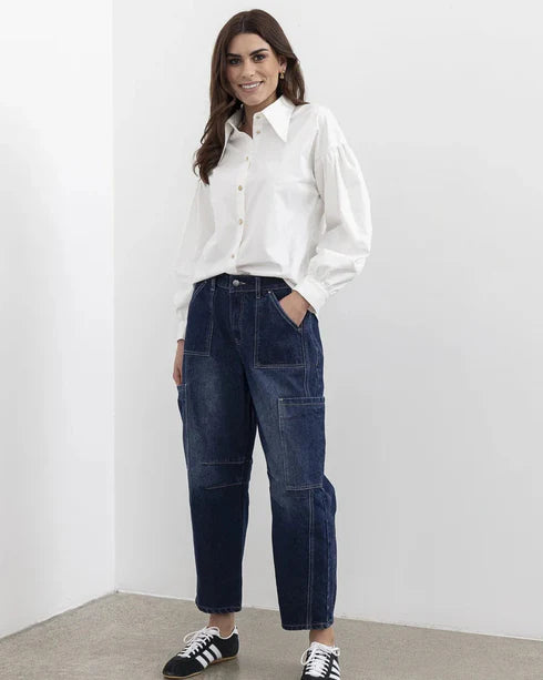 Modern, relaxed, and effortlessly on trend, the Moss Bailey Barrel Jean – Indigo is a standout denim essential designed for contemporary everyday style. Featuring the season’s must-have barrel leg silhouette, this jean offers a flattering shape with relaxed comfort and easy wearability.