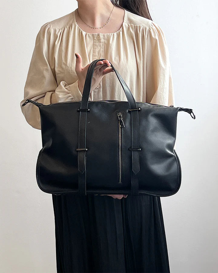 Introducing the Summit Bag, designed for work and everyday versatility, the Summit Bag is your go-to laptop-friendly companion. It features a secure top zip closure, a back-facing zip pocket, two internal zip pockets, and three internal open pockets to keep you organized. The included removable, adjustable crossbody strap ensures comfortable carrying. Black Milled with rose pink internal lining. Perfectly crafted for modern life, from the office to on-the-go adventures.