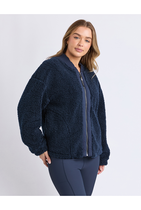 The Kimberley Bomber is all about plush texture and cosy vibes. Made from soft teddy fleece, it features a clean front zip and roomy side pockets for everyday wear. The relaxed bomber shape makes it easy to throw on over activewear or casual outfits when you want comfort with a little extra style.